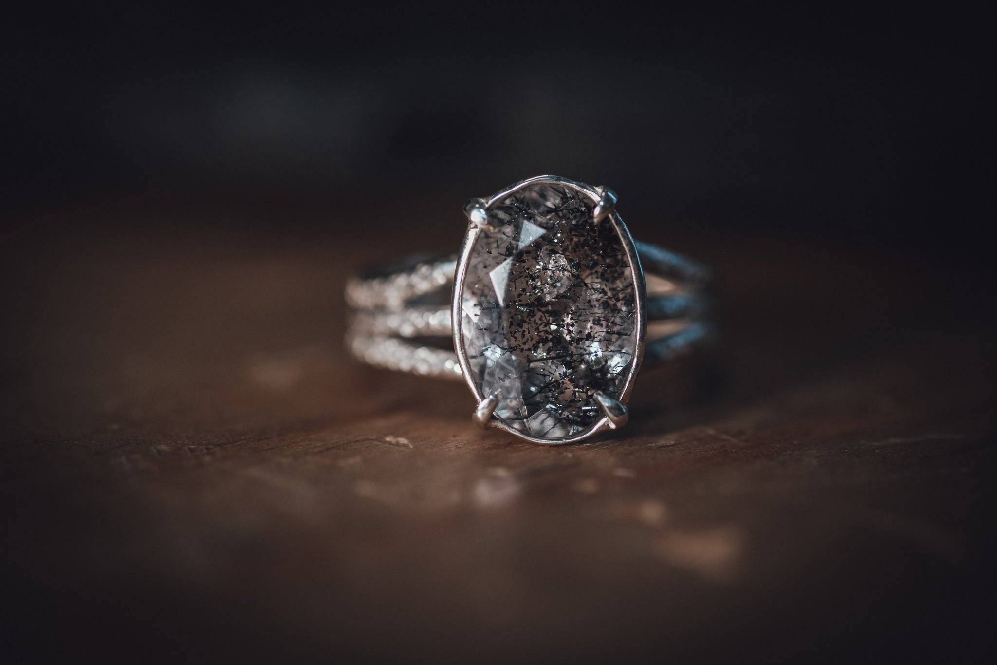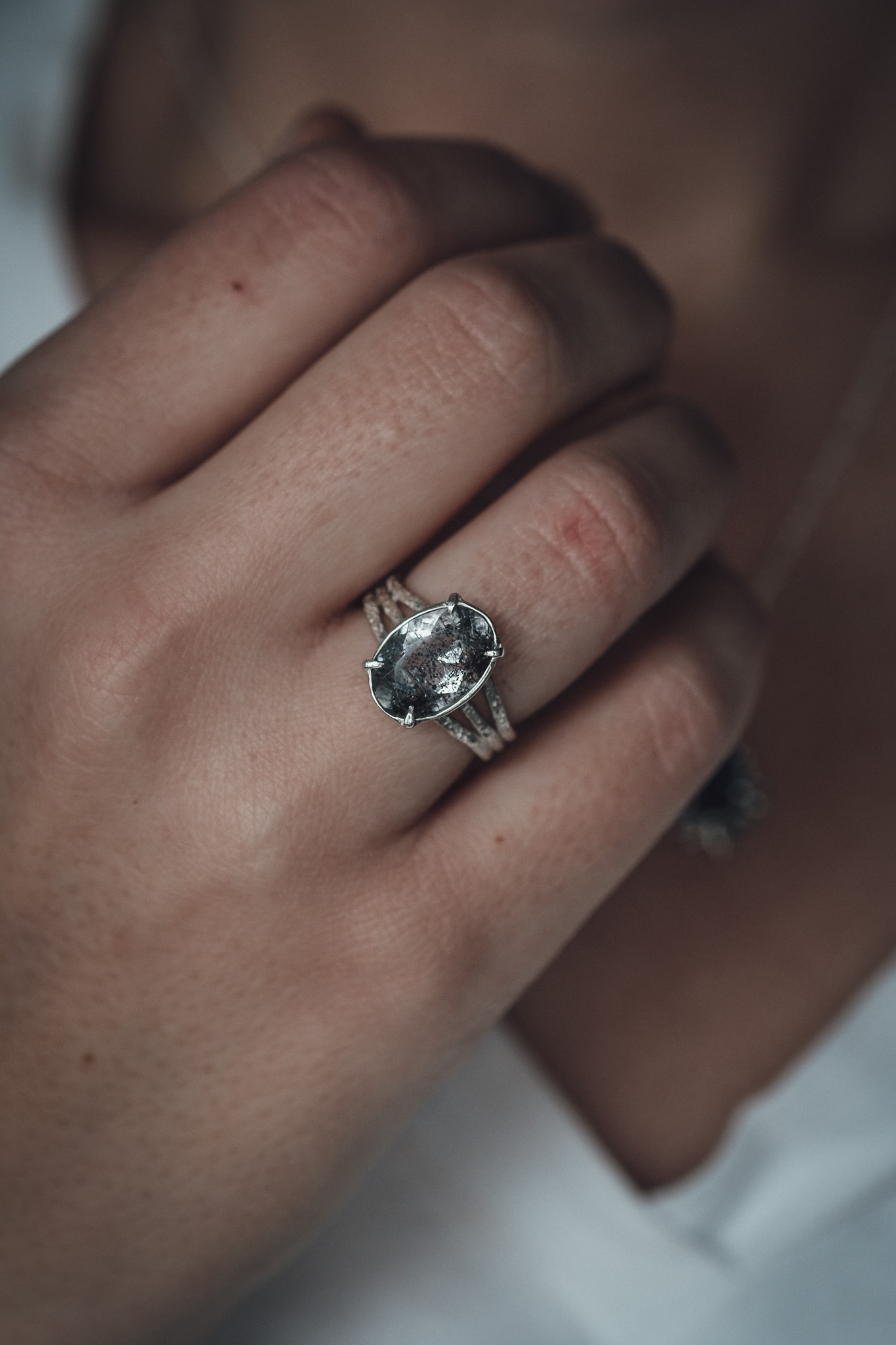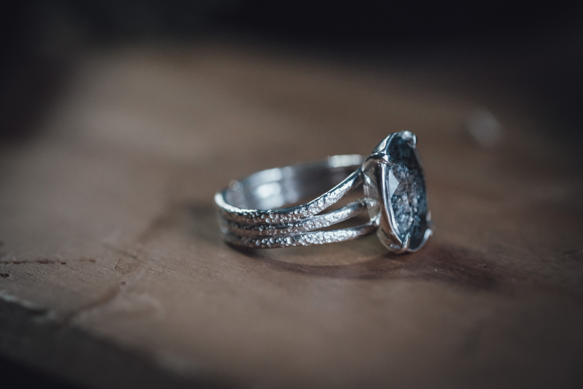 Bague en argent 925 composée d’une Super Seven Rutilé et de 3 anneaux sablés.