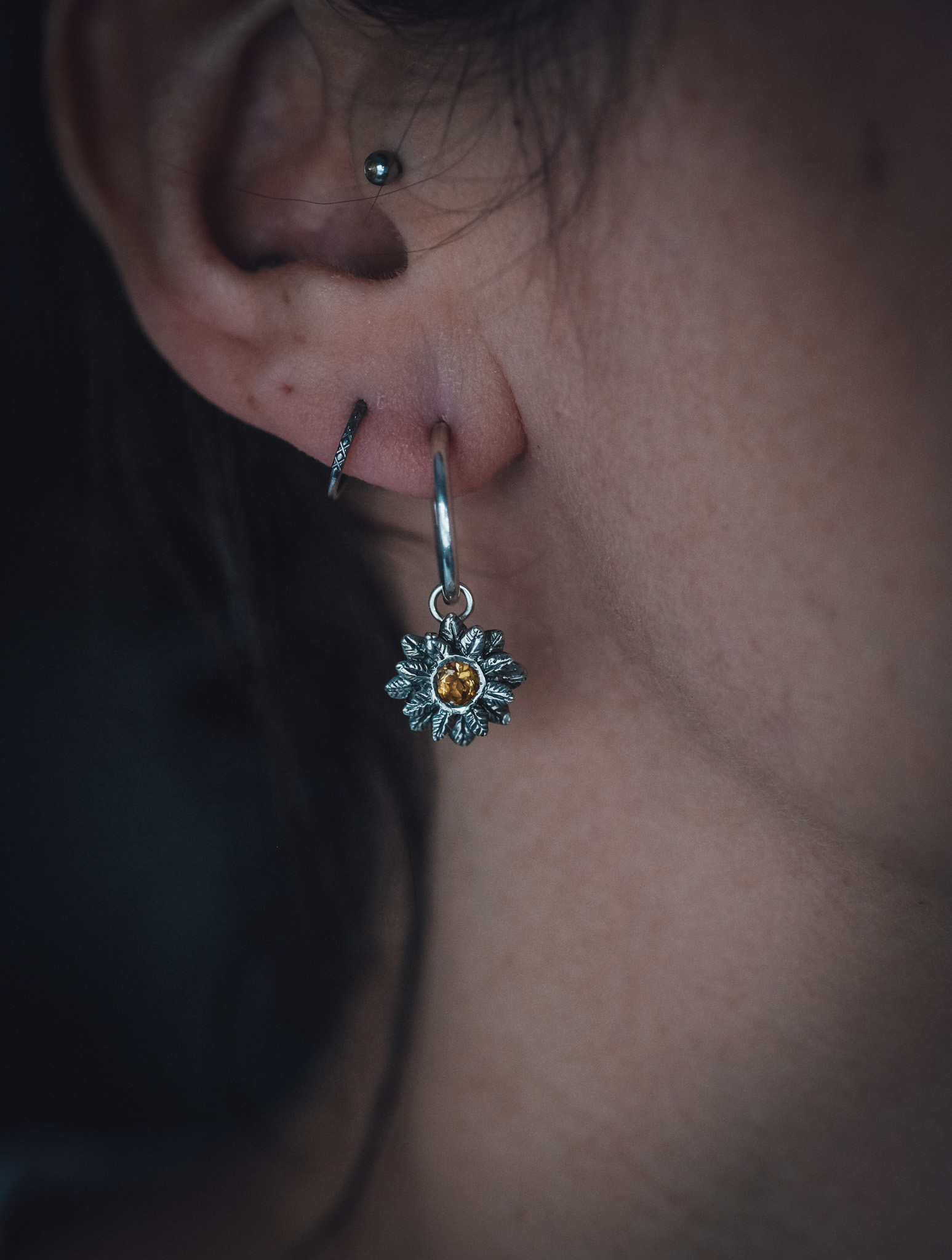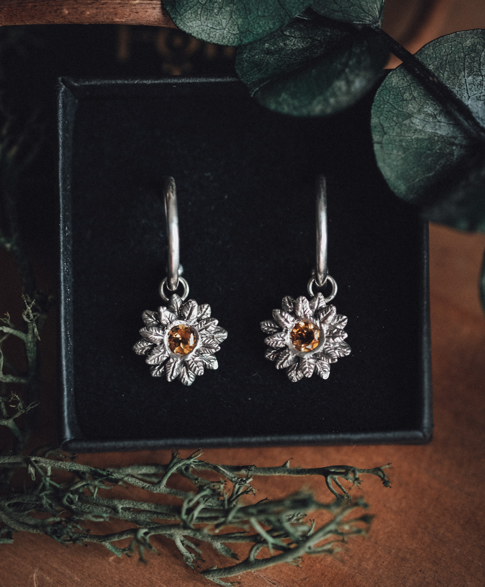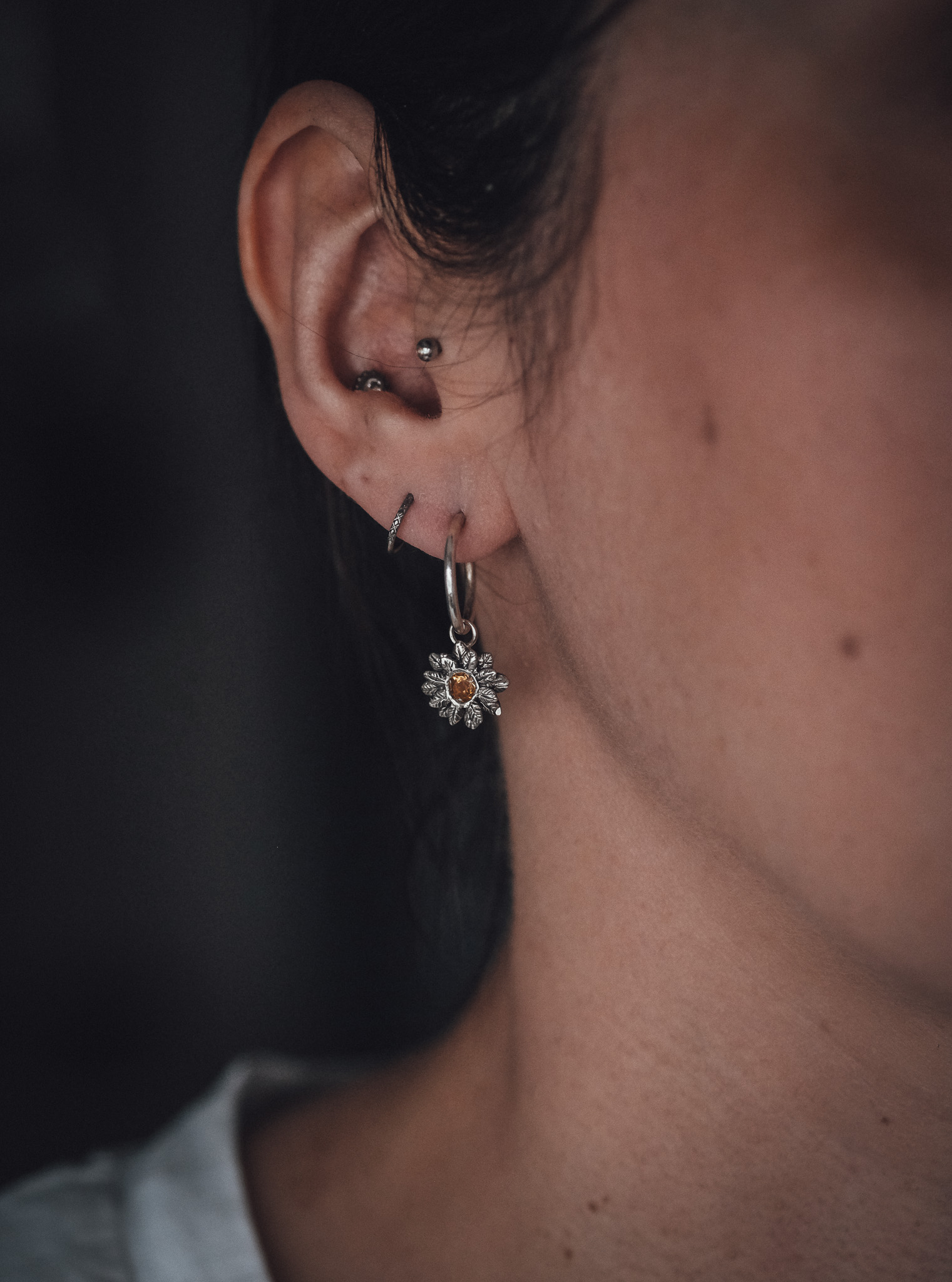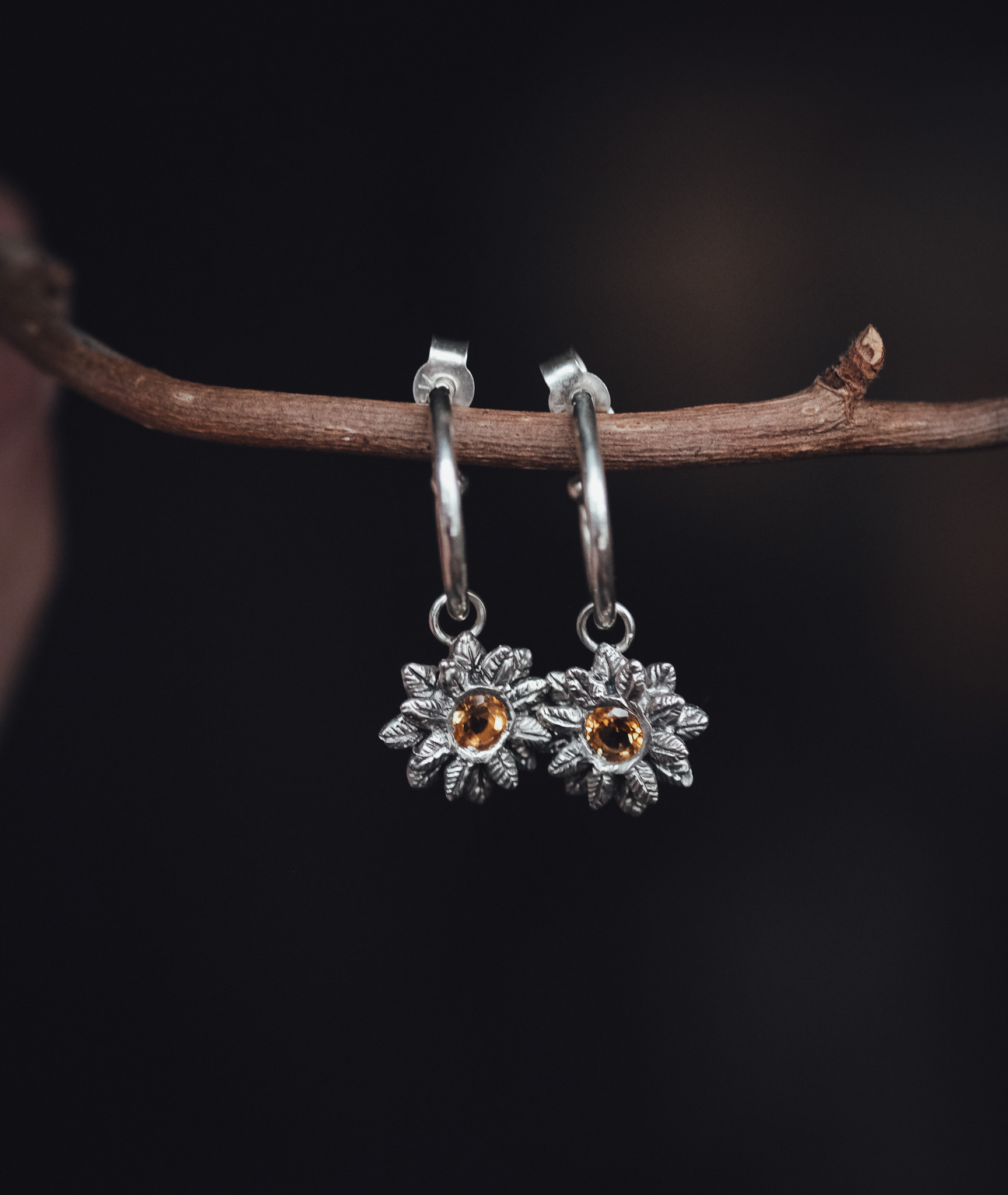 Boucles d’oreilles créoles en argent 925 composées de deux citrines d’un orange flamboyant.