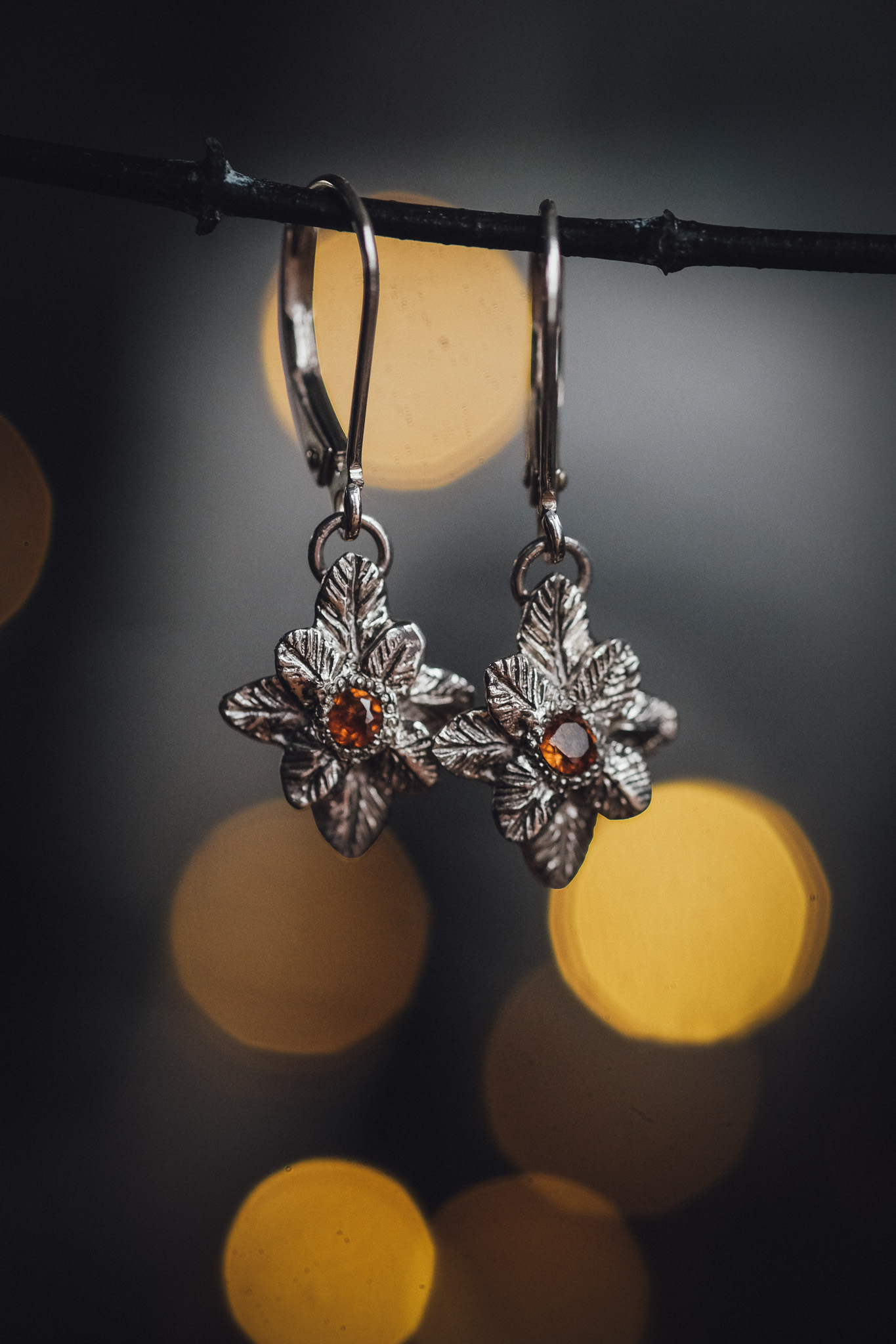 Boucles d’oreilles en argent 925 composées de deux Grenats Hessonites.