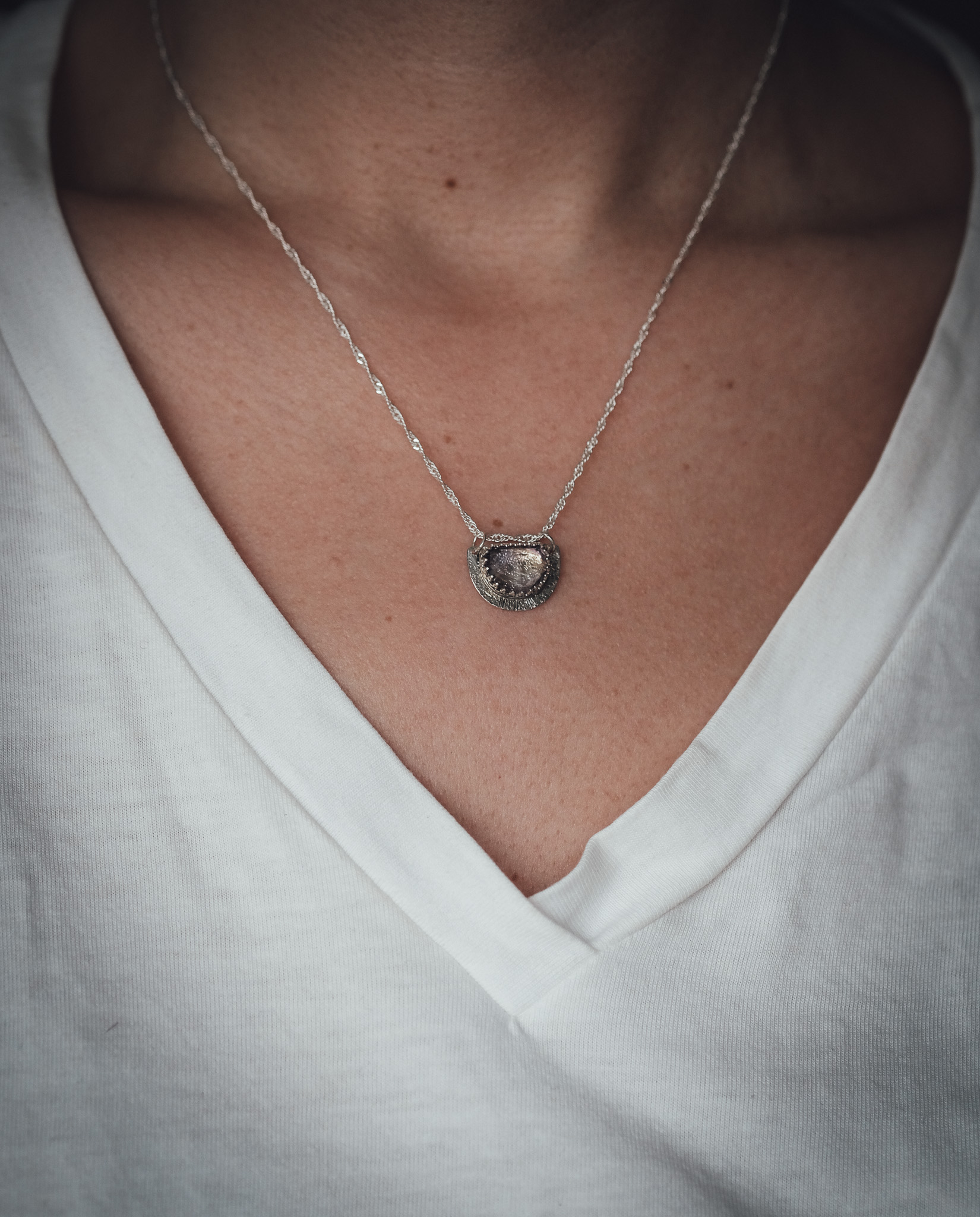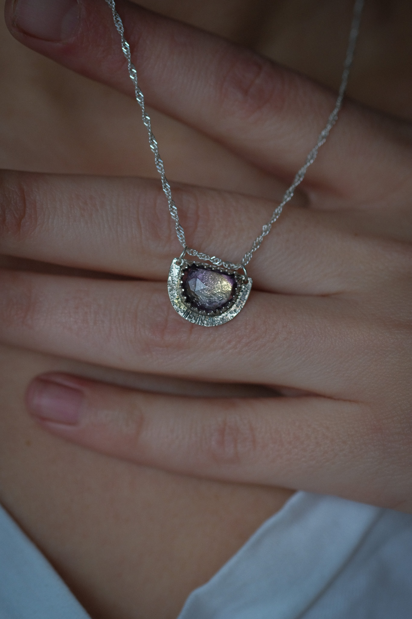 Collier en argent 925 et composé d’une amétrine naturelle (Améthyste & citrine) et inspiré de l’art byzantin.