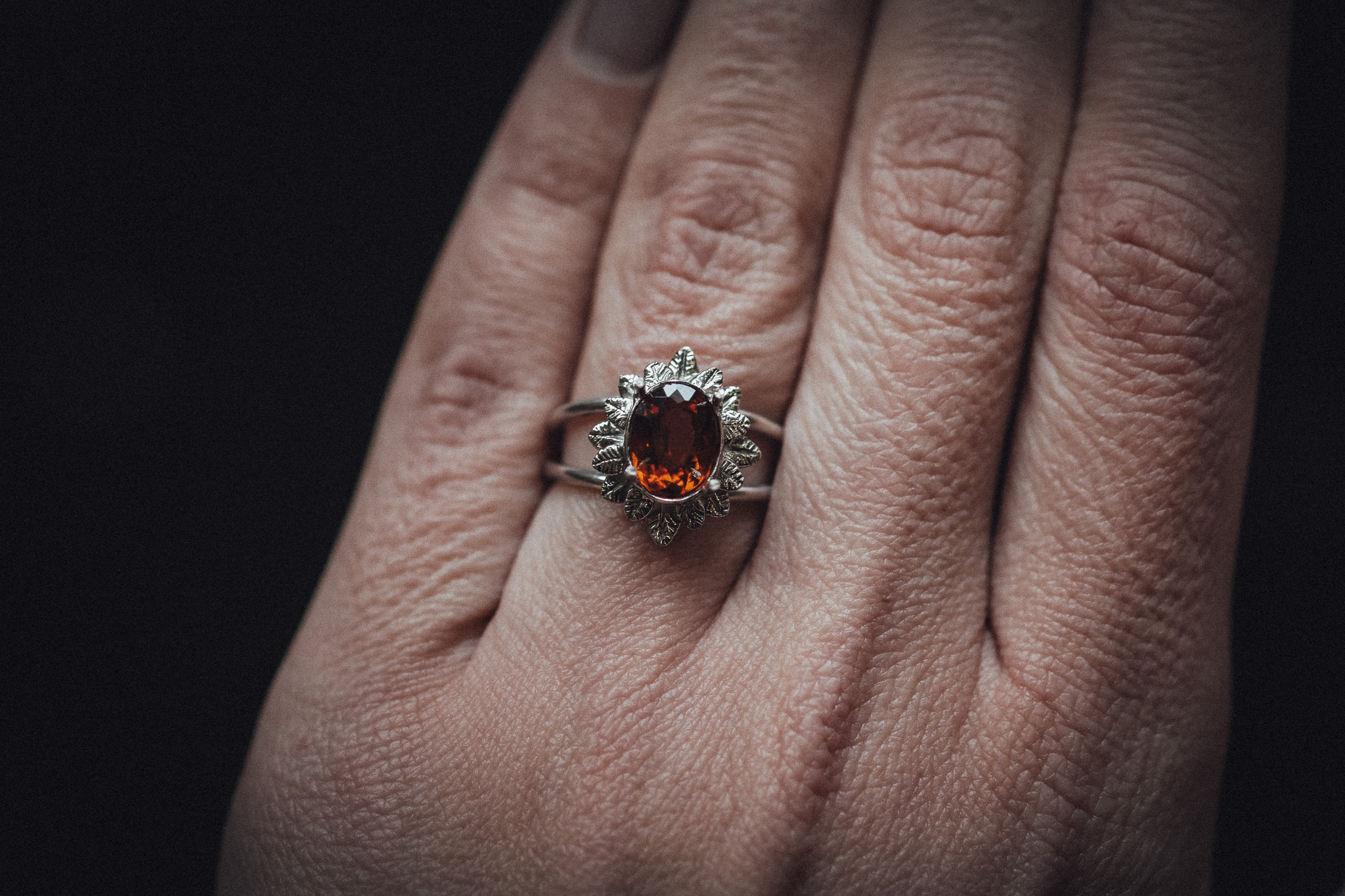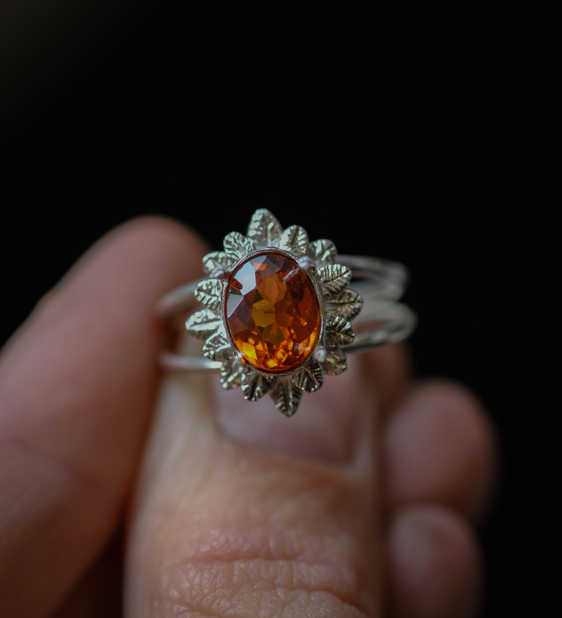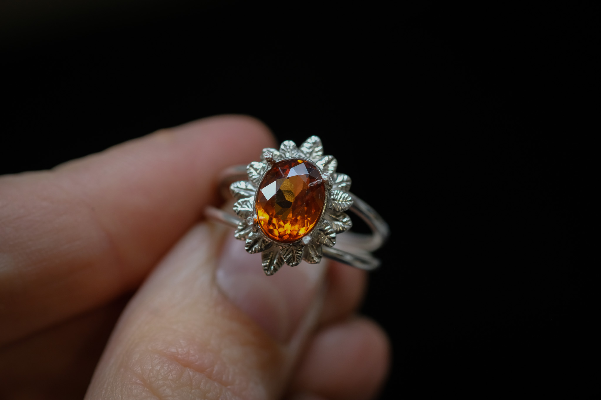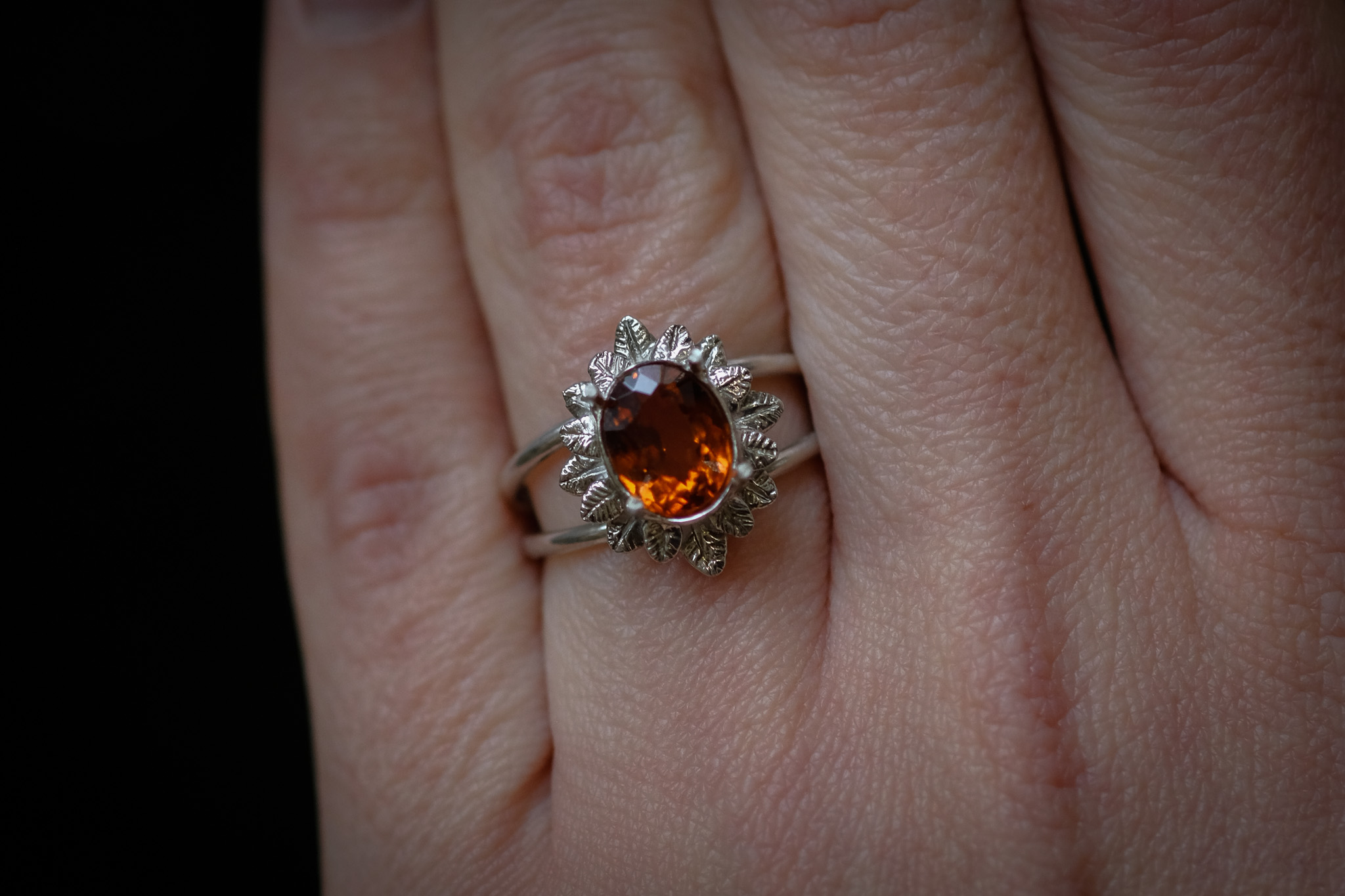 Bague en argent 925 composée d’un Grenat Hessonite caramel de 9x7mm.