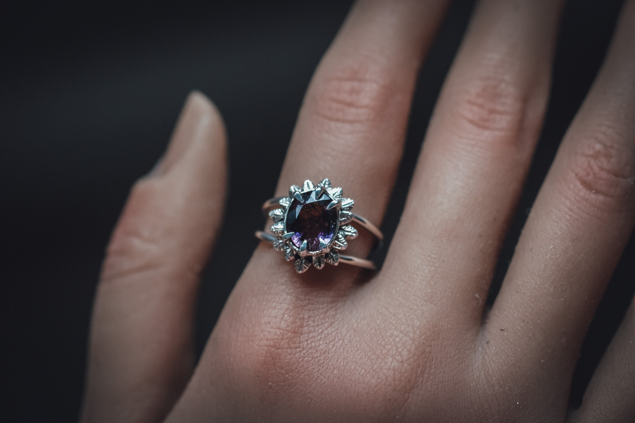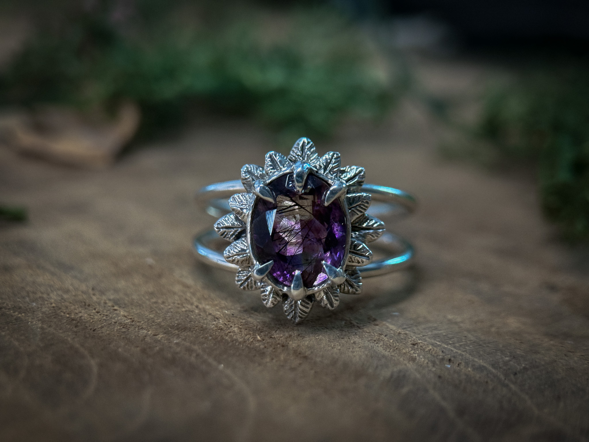 Bague en argent 925 composée d’une Super Seven Améthyste de 9x7mm.