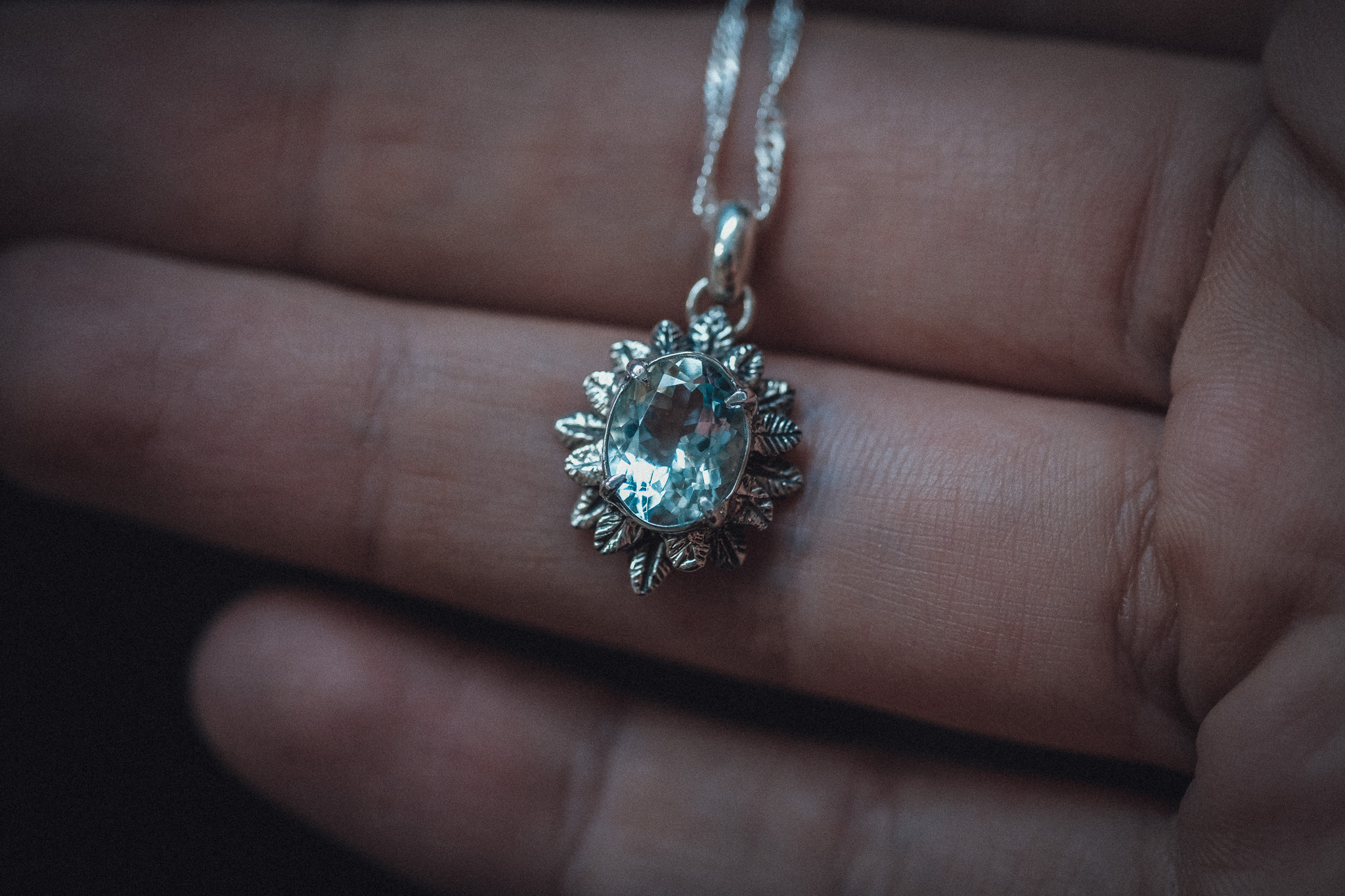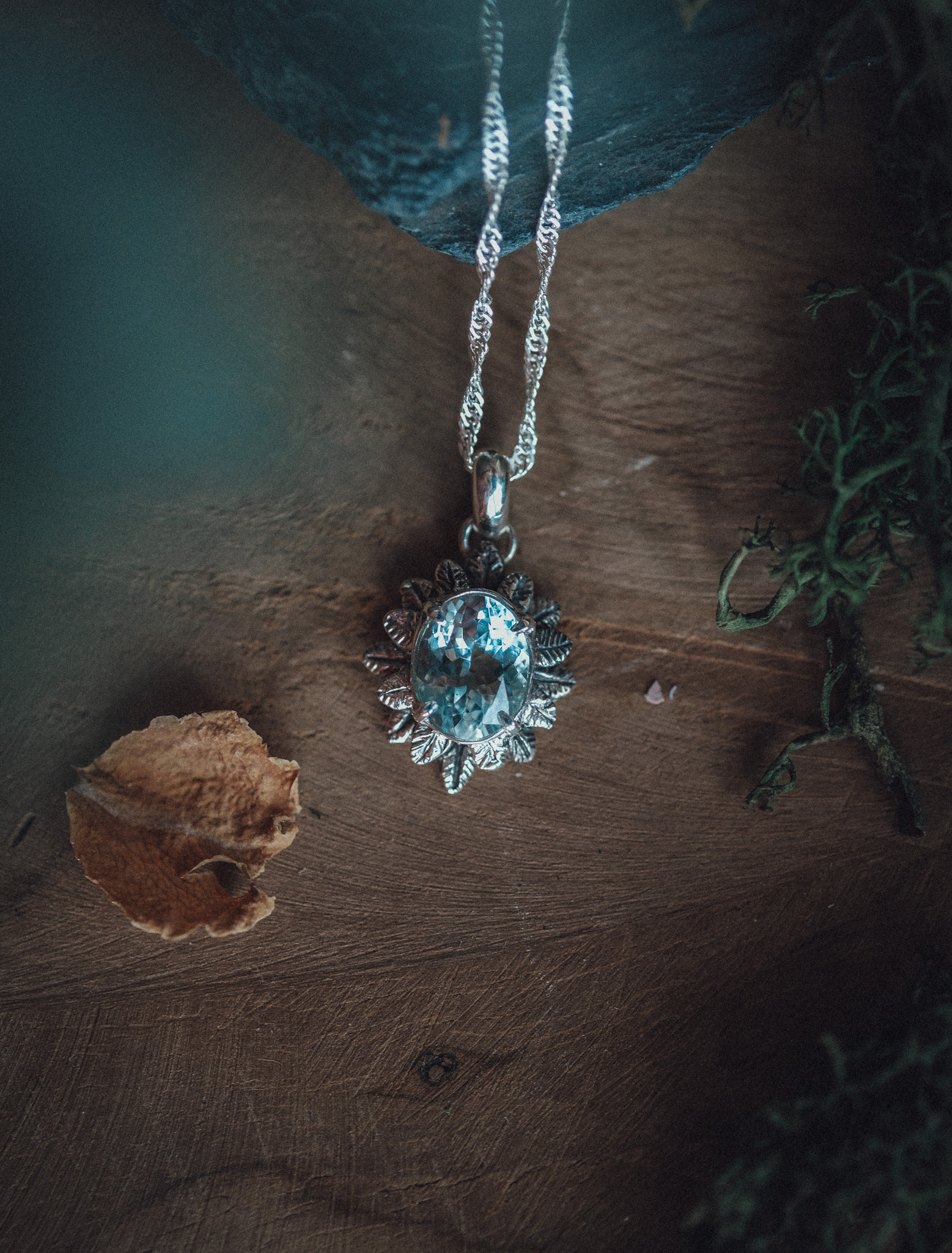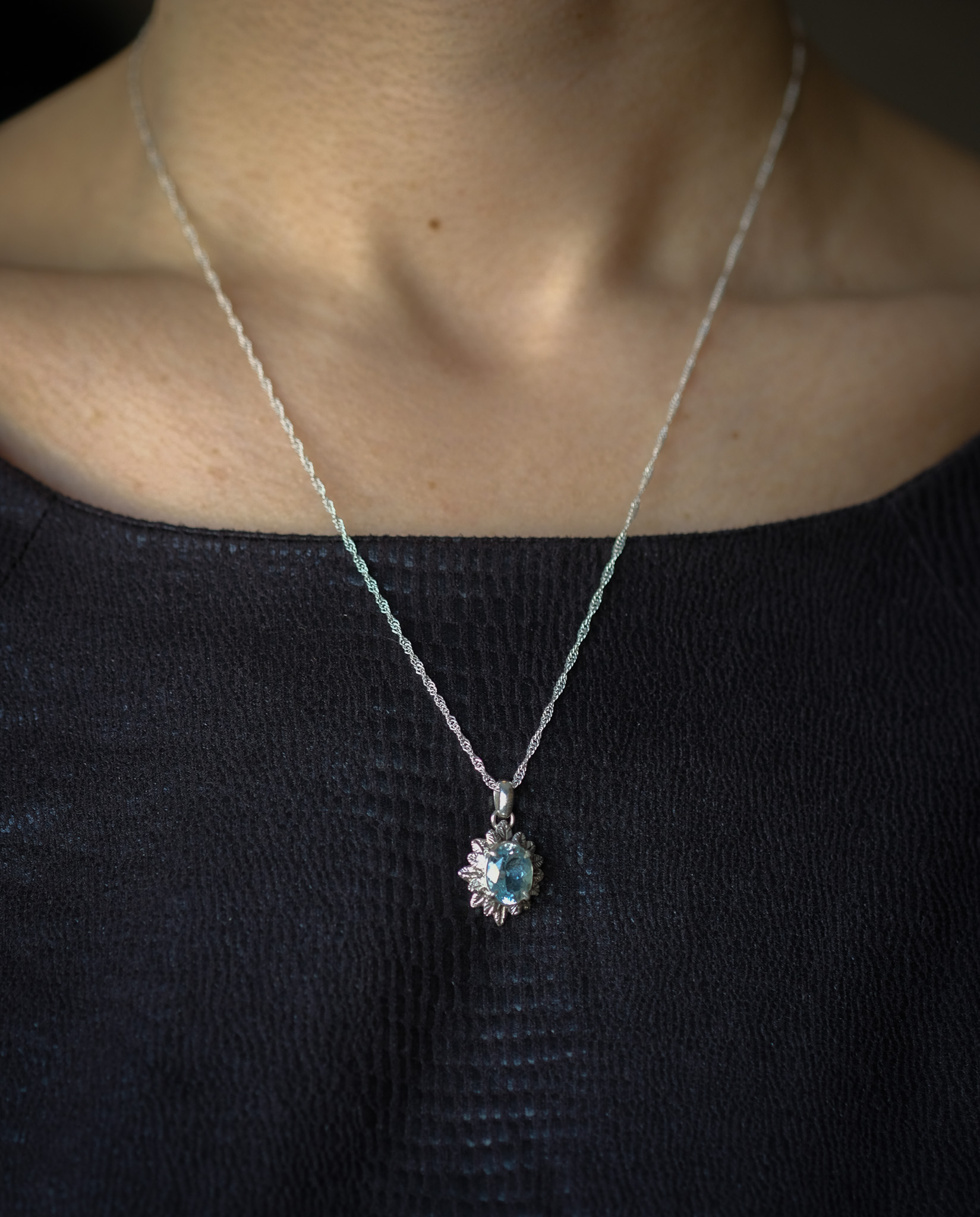 Collier en argent 925 composée d’une Aigue-marine de 9x7mm.