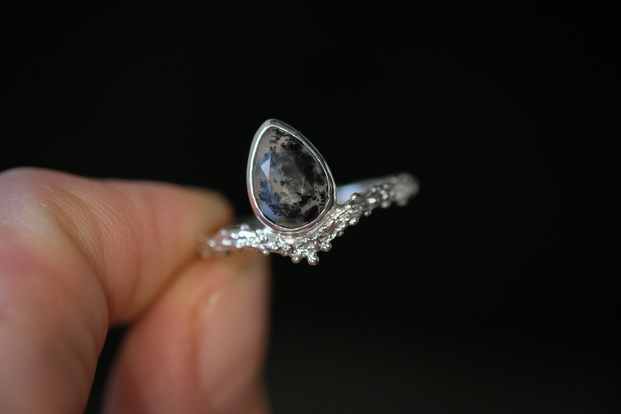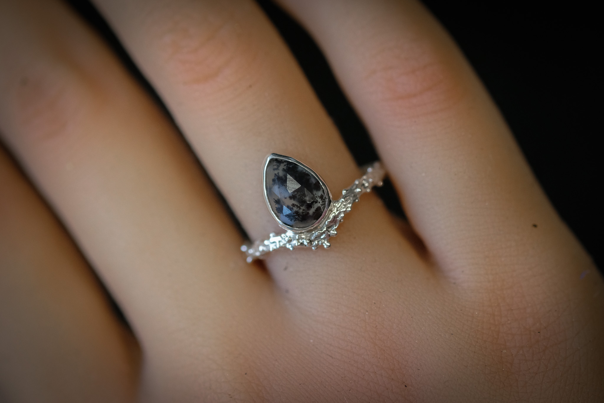 Bague en argent 925 composée d’une Opale Dendritique ou « Merlinite ».